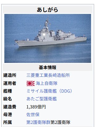 >あたご型護衛艦の2番艦。