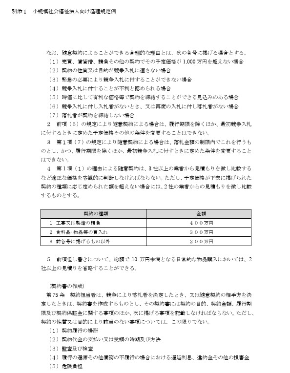 小規模社会福祉法人経理規程例74条抜粋には