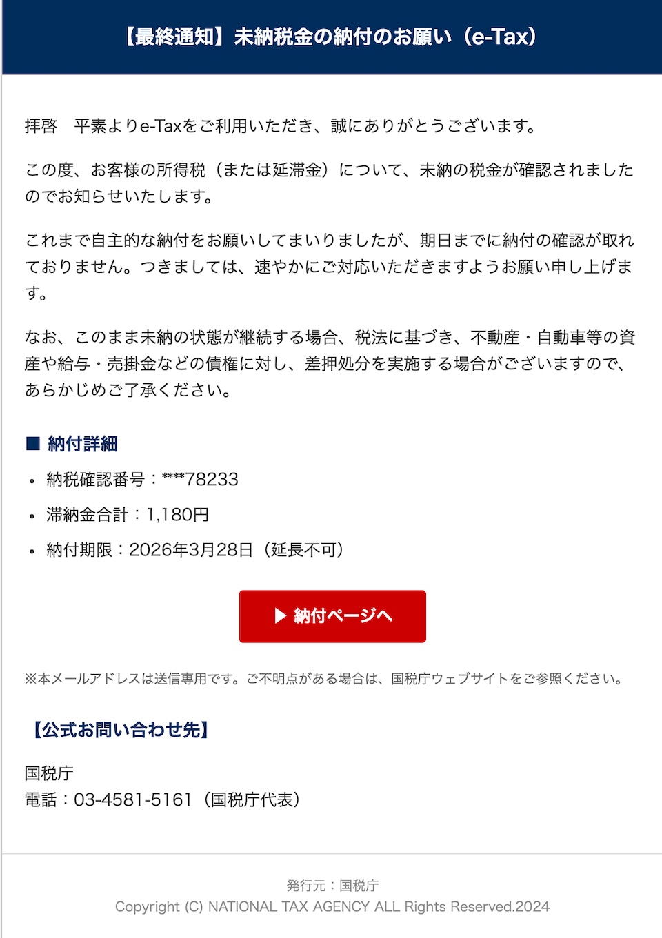 Re:督促状 すぎまろ 26/3/28(土) 12:37
