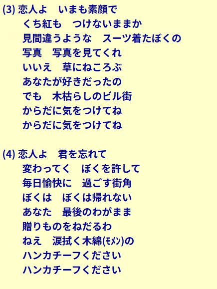 高圧的な女性バージョン「木綿のハンカチーフ風」オリジナル歌詞